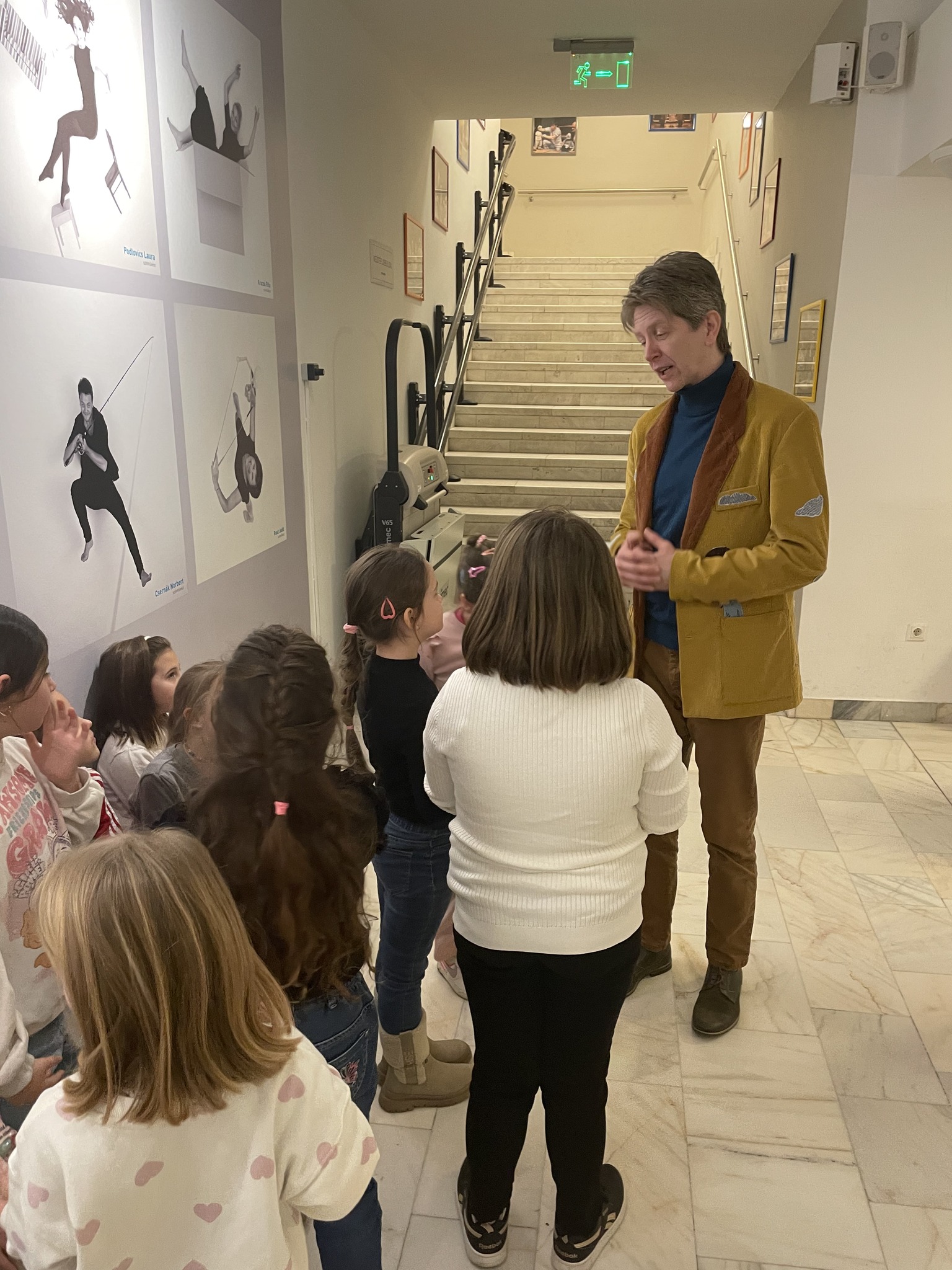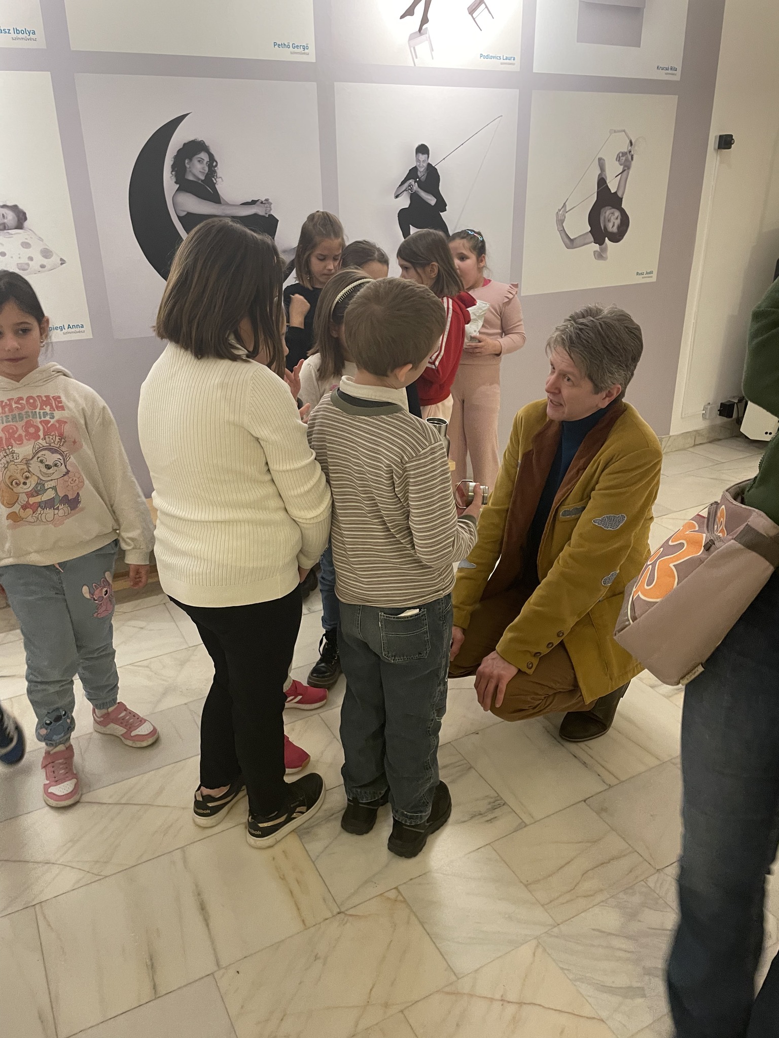 Különösen nagy élményt jelentett számukra, amikor a két felvonás szünetében a darab főszereplője, maga Péntek úr, azaz Tatai Zsolt színművész beszélgetett velük. Bátran kérdeztek tőle és lelkesen válaszoltak a kérdéseire.